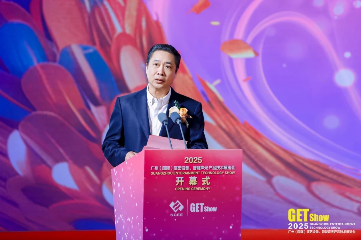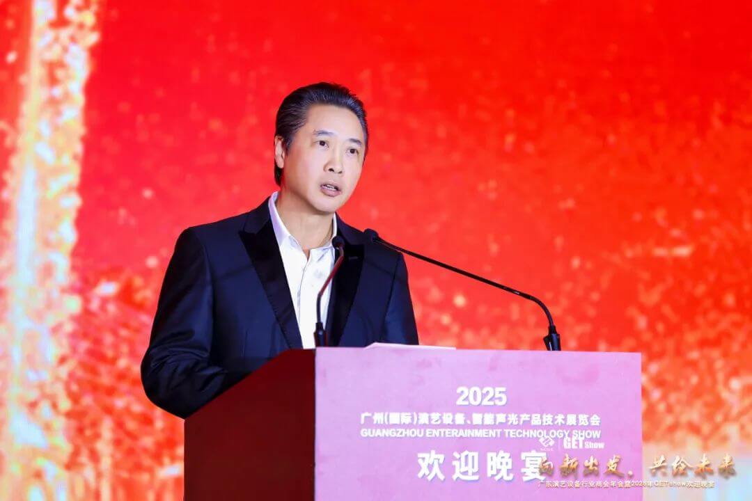 廣東演藝設(shè)備行業(yè)商會(huì)會(huì)長(zhǎng)、珠江燈光董事長(zhǎng)梁志遠(yuǎn)代表商會(huì)發(fā)表致辭,他首先向每一位百忙中抽空出席的嘉賓、政府領(lǐng)導(dǎo)、參展商、行業(yè)商協(xié)會(huì)合作伙伴致以熱烈的歡迎與感謝!他表示GETshow正是行業(yè)創(chuàng)新成果與實(shí)力的精彩展現(xiàn),是行業(yè)發(fā)展的一座重要里程碑,每一款展品背后,都凝聚著行業(yè)同仁的智慧與汗水。這不僅是一場(chǎng)產(chǎn)品的展示,更是一次全球演藝設(shè)備行業(yè)精英的深度交流與融合!未來四天,預(yù)祝大家觀展愉快!收獲滿滿!