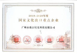廣州市珠江燈光科技有限公司榮獲“2019-2020年度文化重點出口企業”稱號